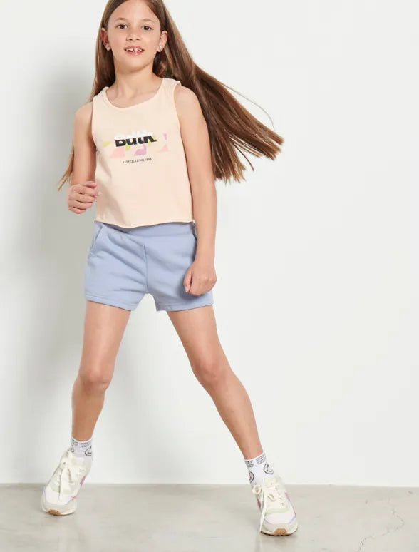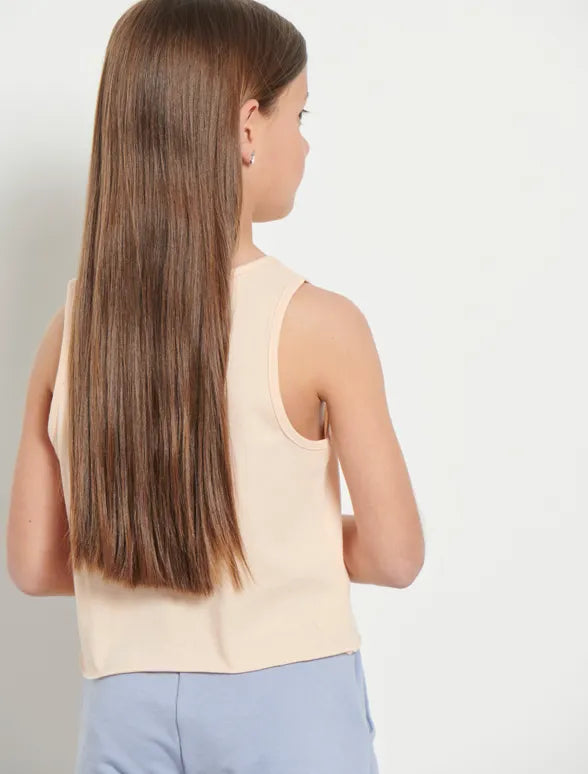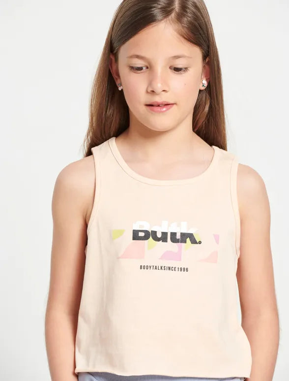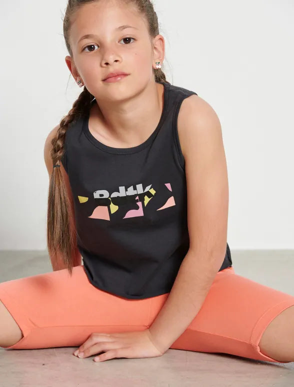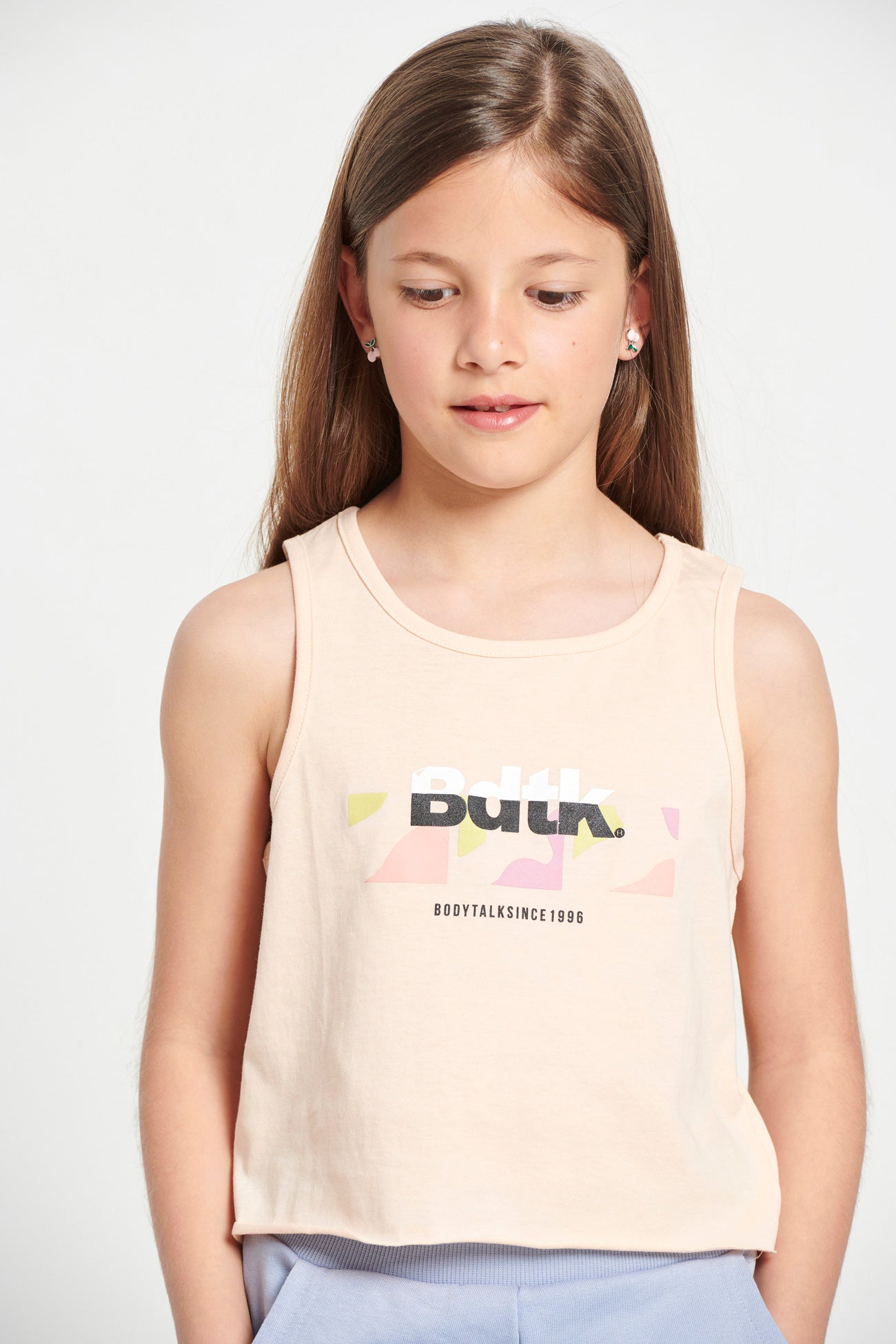 Kids’ sleeveless crop top for girls •With round neckline •Features a print at the front •Soft cotton fabric •Loose and comfortable fit •Regular fit •Composition of 100% cotton