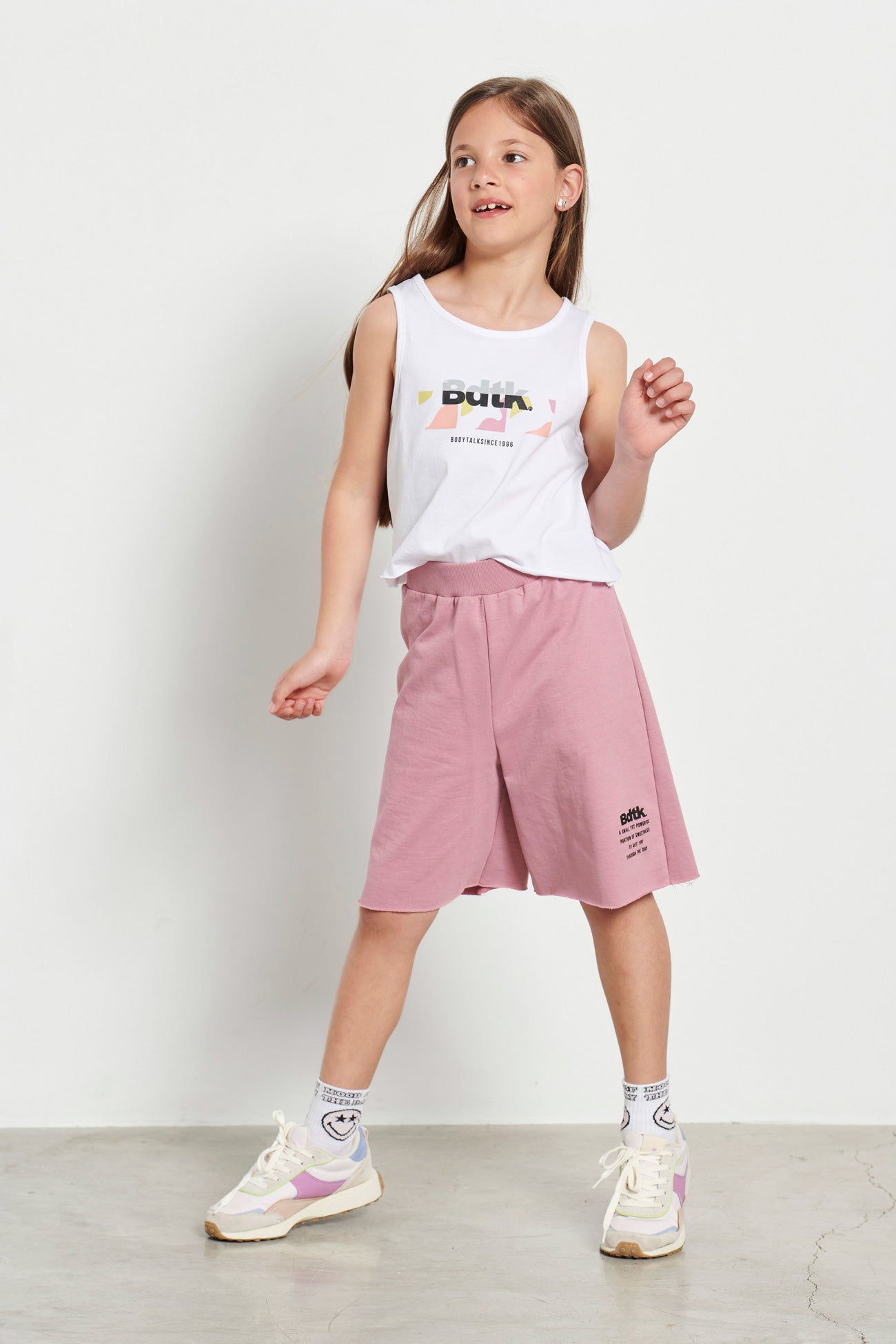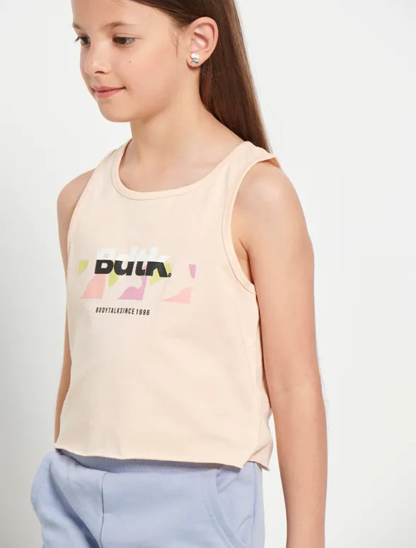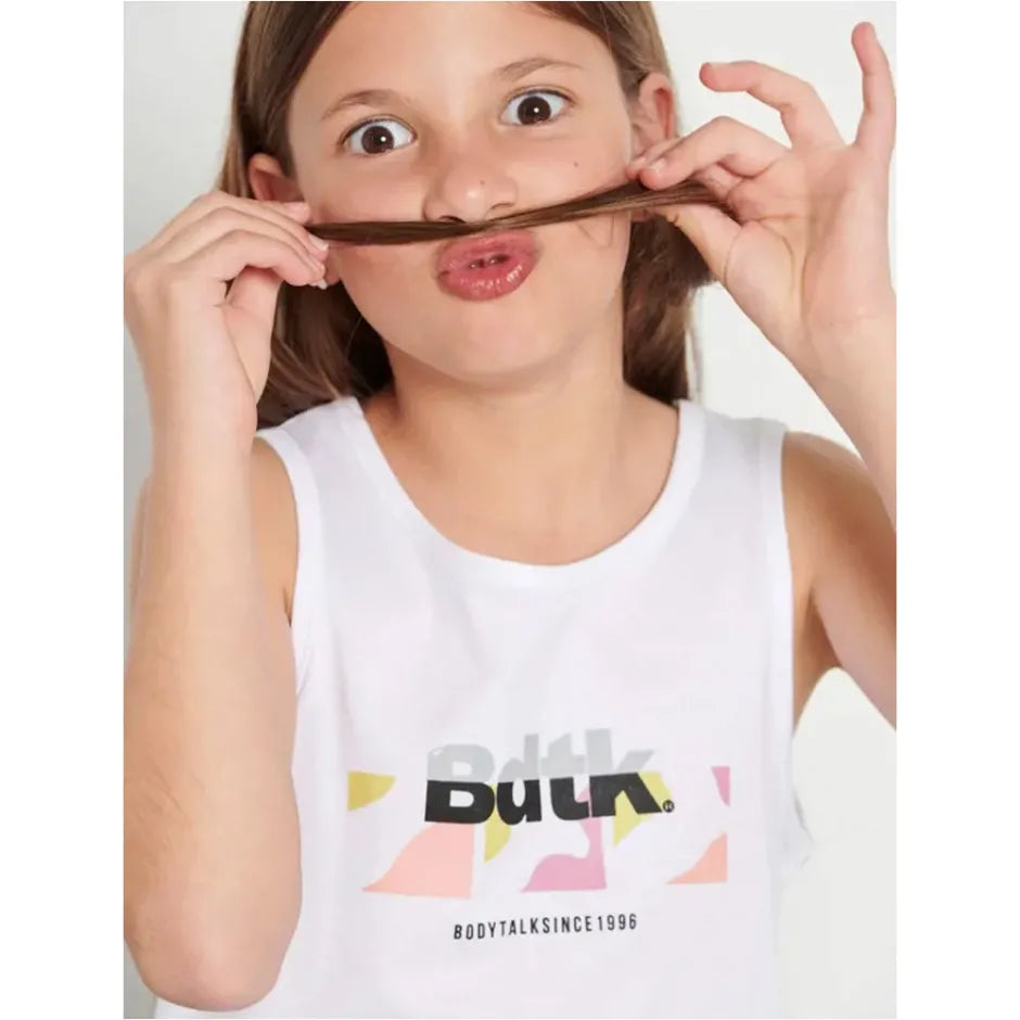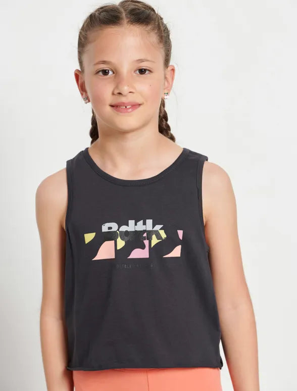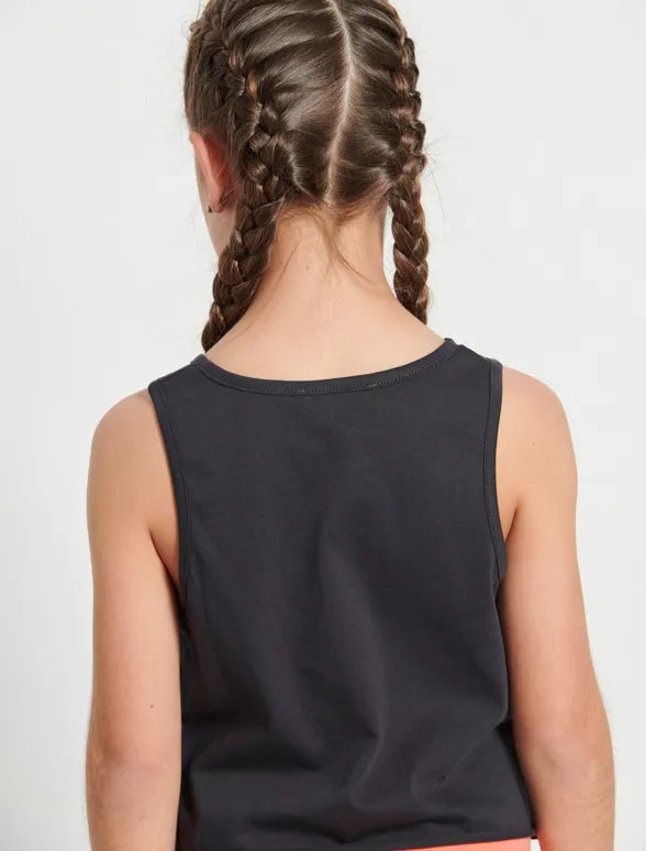Kids’ sleeveless crop top for girls •With round neckline •Features a print at the front •Soft cotton fabric •Loose and comfortable fit •Regular fit •Composition of 100% cotton