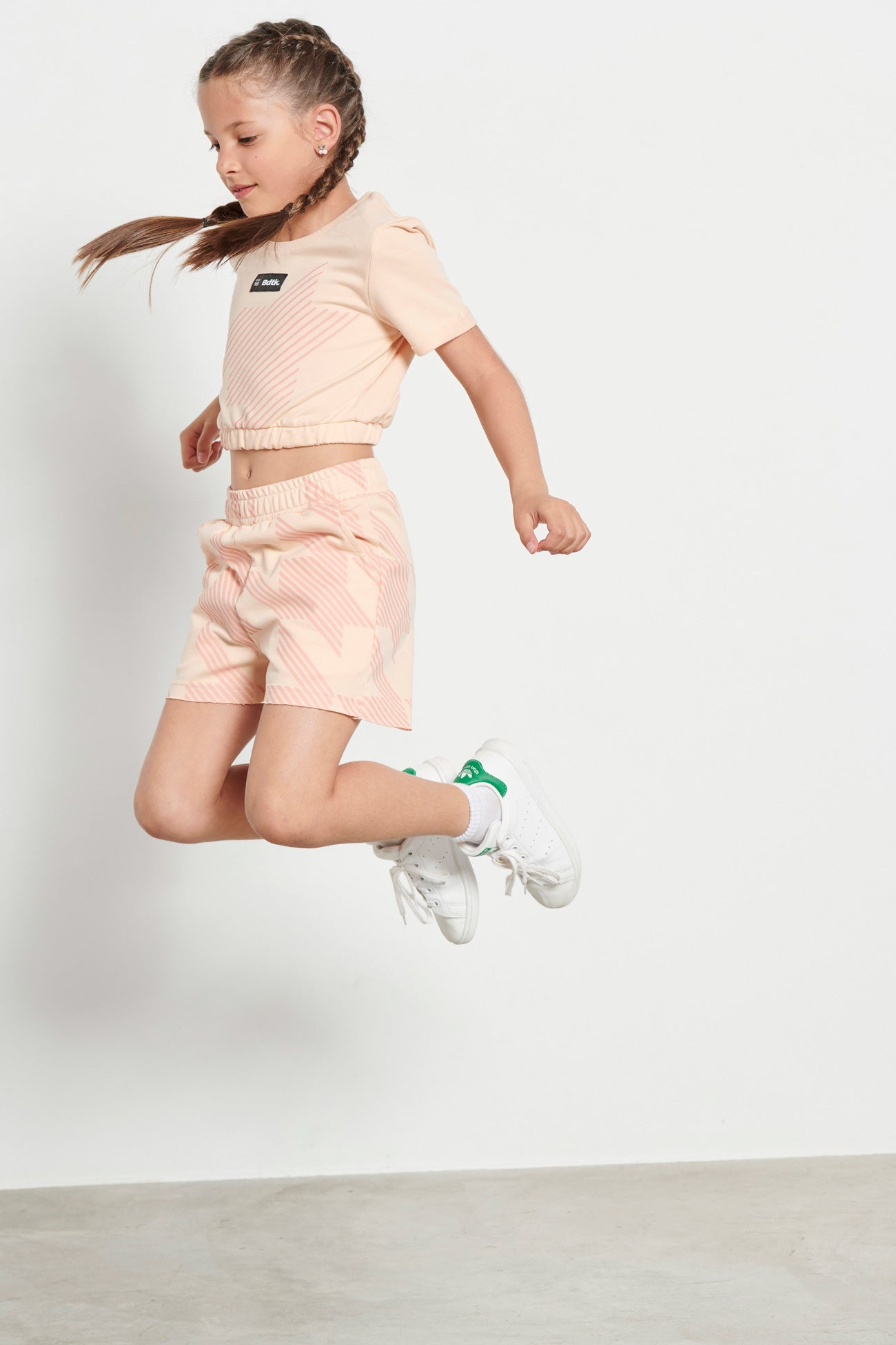 Kids’ loose fit bermuda shorts for girls •Elastic waistband •All over printed •Two side pockets and one on the back •Comfortable fit •Ideal for exercise and daily activities •Composition of 80% cotton and 20% polyester