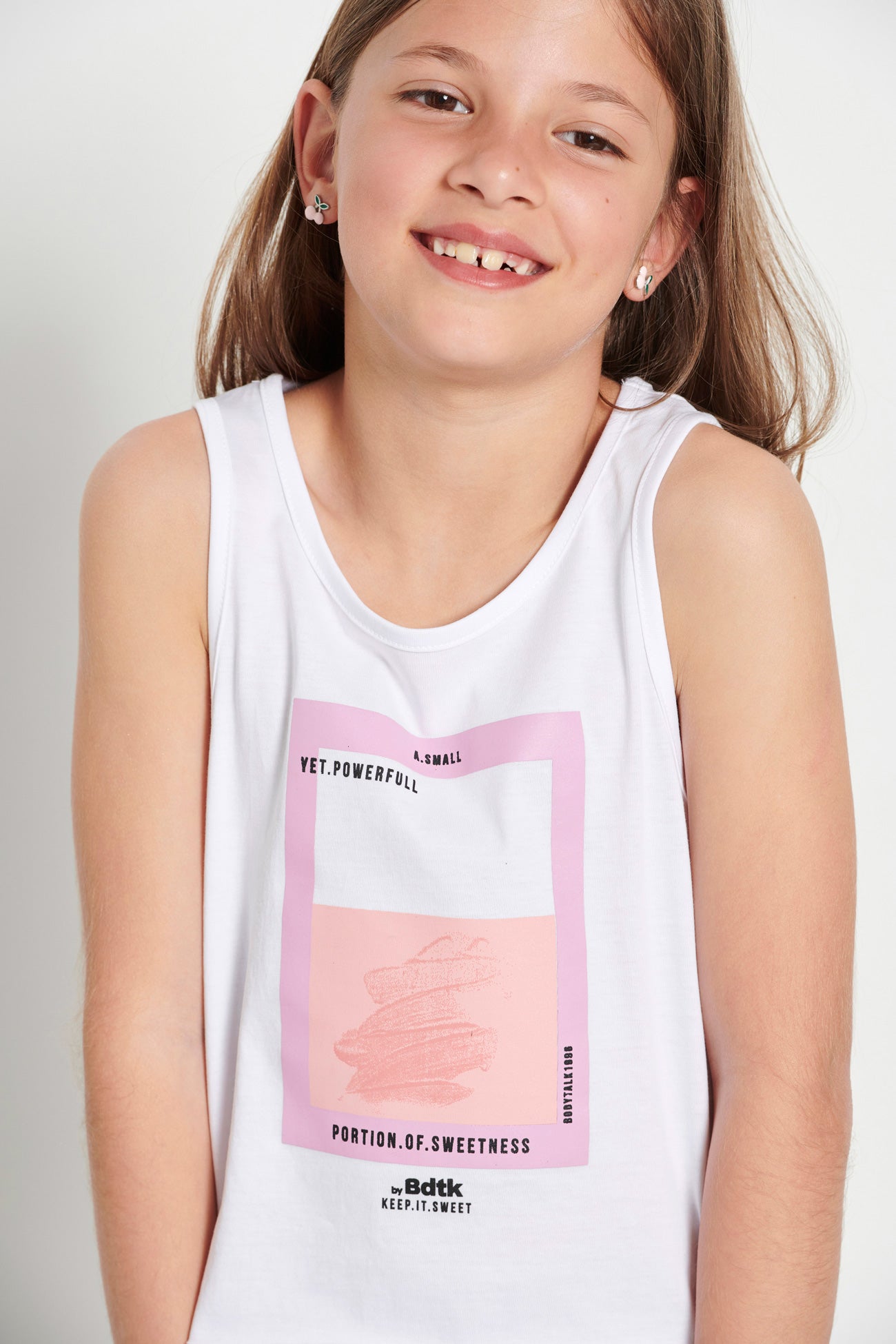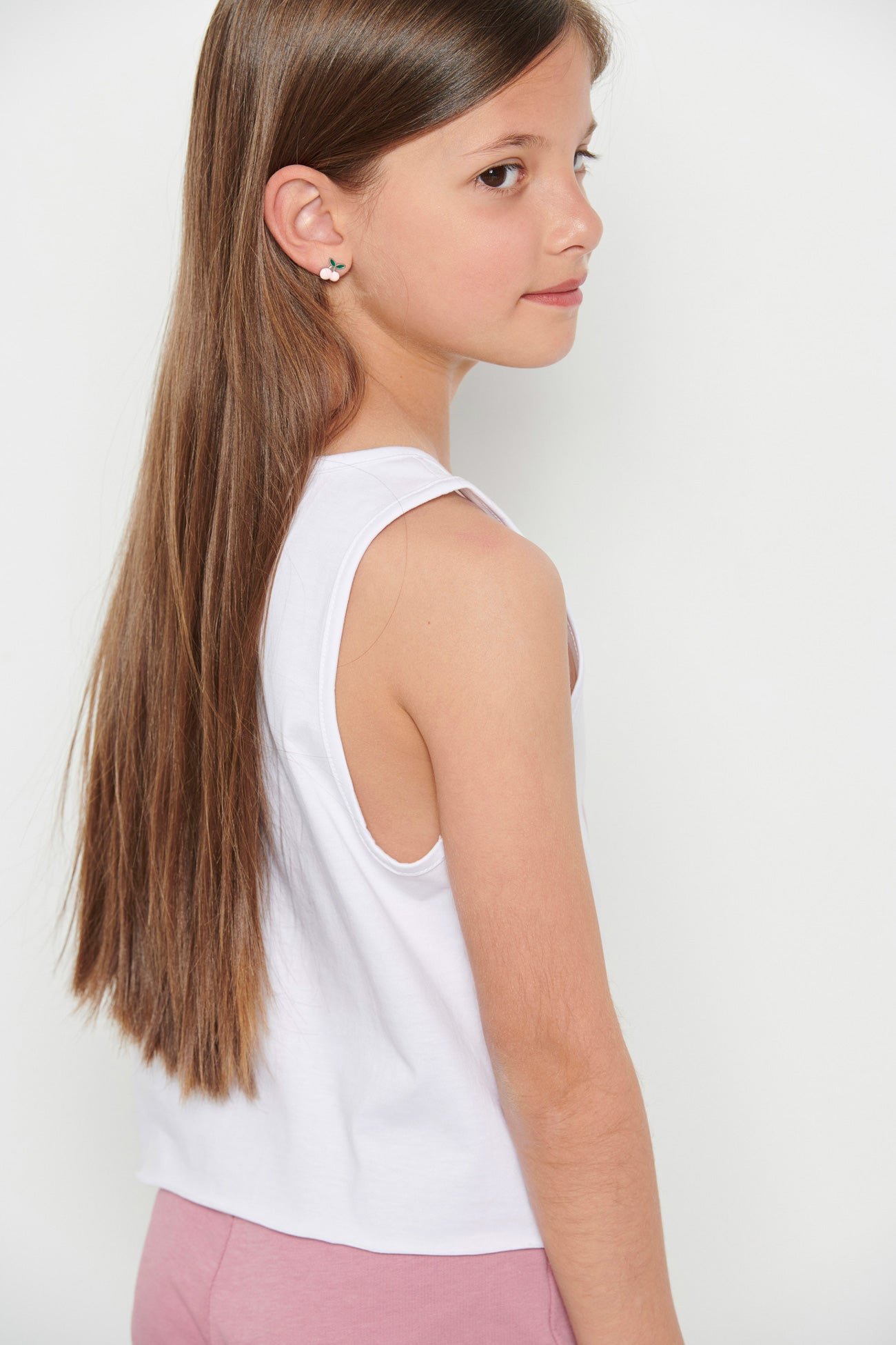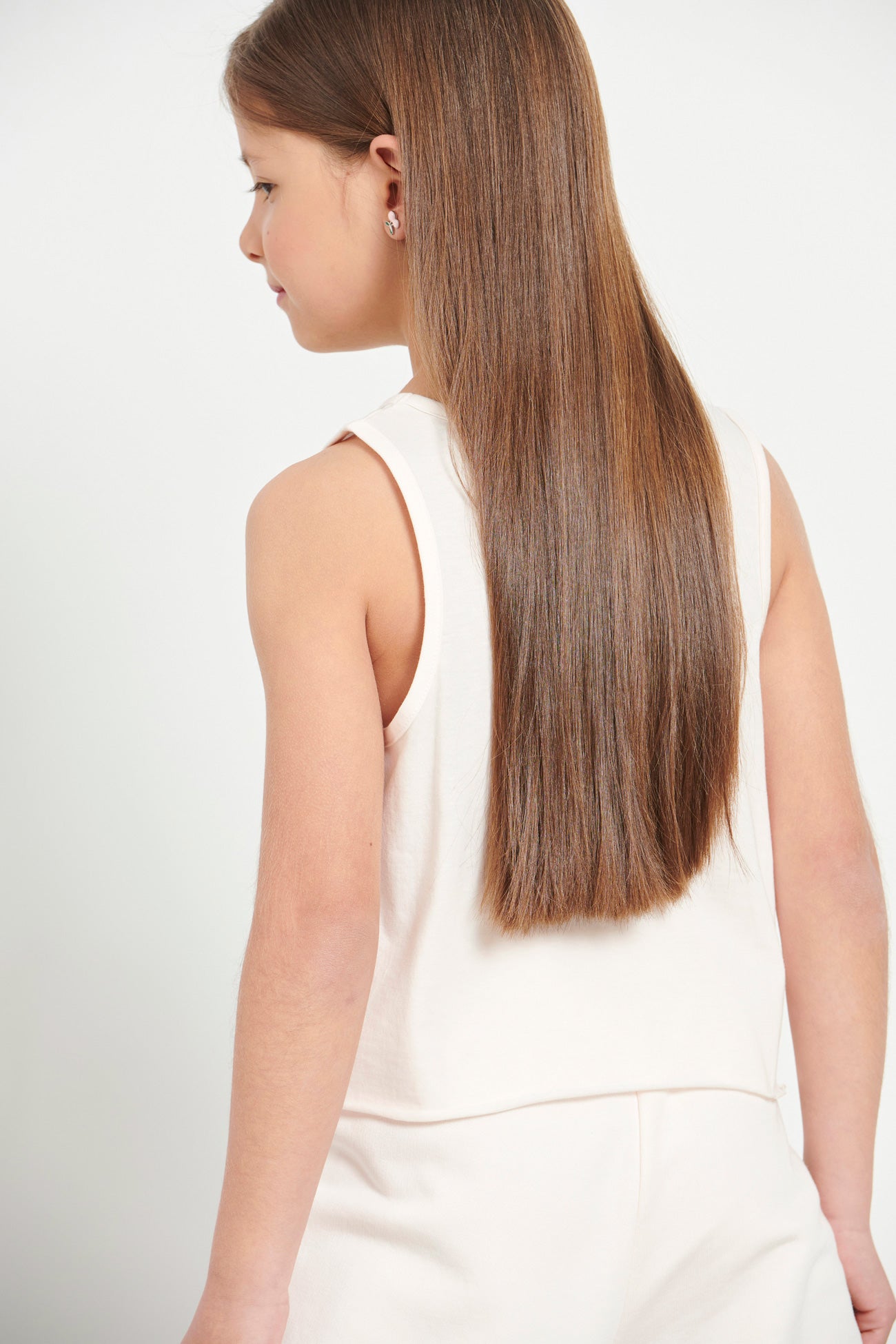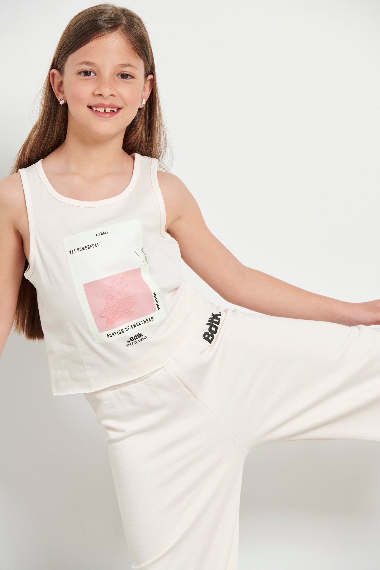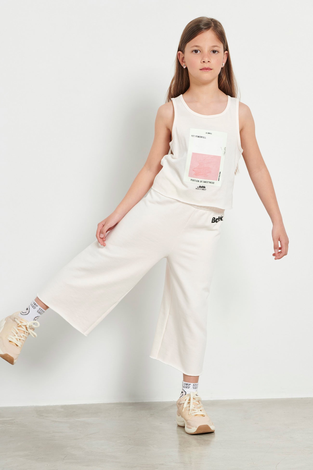 Kids’ sleeveless crop top for girls •With round neckline •Features a print at the front •Soft cotton fabric •Loose and comfortable fit •Regular fit •Composition of 100% cotton